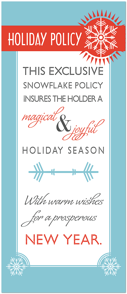 The following Insurance Holiday Cards are ideal if you work in the insurance industry. Colorful holiday cards with auto imagery are great to send to your car insurance clients. Choose from a variety of home or house related holiday cards if you have home insurance clients. Have some fun with your clients by sending them personalized holiday policy cards that have the look and feel of an insurance policy but with humorous holiday verses.