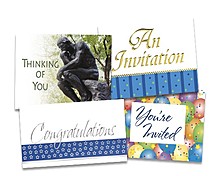 Personalized business greeting cards including complete mailing services.