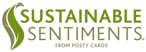 Sustainable Sentiments® thank you cards are printed on recycled paper and come with 100% recycled envelopes. Cards in this line are designed to look green. But you can feel good about using all Posty Cards' products.