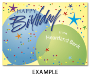 Your company name will be added to the balloon on the front of the card. Please type your company name in Special Instructions at checkout. You will receive a proof via email. As an added value when you order custom cards, you get: