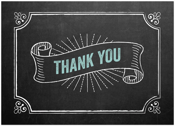 A chalkboard-style thank you card that is perfect to keep on hand. Printed on matte FSC® paper.
