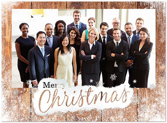 The snow-covered wood is the perfect backdrop for your photo. This card features silver foil stamping on satin FSC® paper.