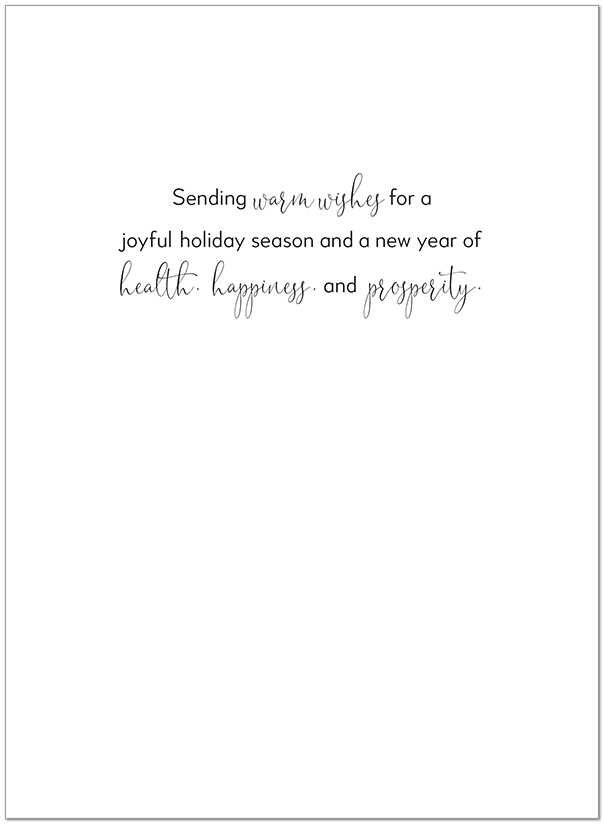 Interior Text: Sending warm wishes for a joyful holiday season and a new year of health, happiness, and prosperity.