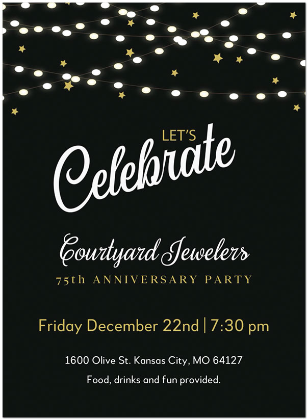 This elegant invitation features a celebration lights design. Printed on Printed on satin FSC® paper.