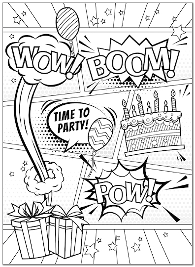 Interior Text: Color your way to a birthday that's bursting with fun!