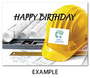 This birthday card features a construction hat design and your company name or logo on the front of the card. Printed on satin FSC® paper.