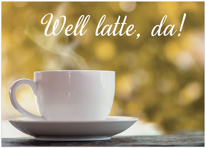 A custom notecard featuring a hot coffee cup and your own sentiment on the front. Printed on satin FSC® paper.