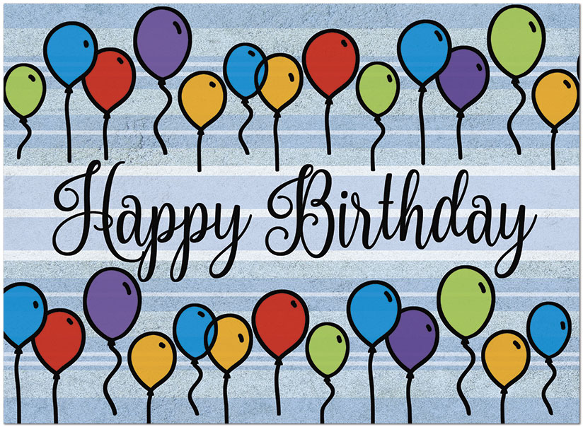 A fun birthday card that is perfect for all ages featuring colorful balloons printed on satin FSC® paper.