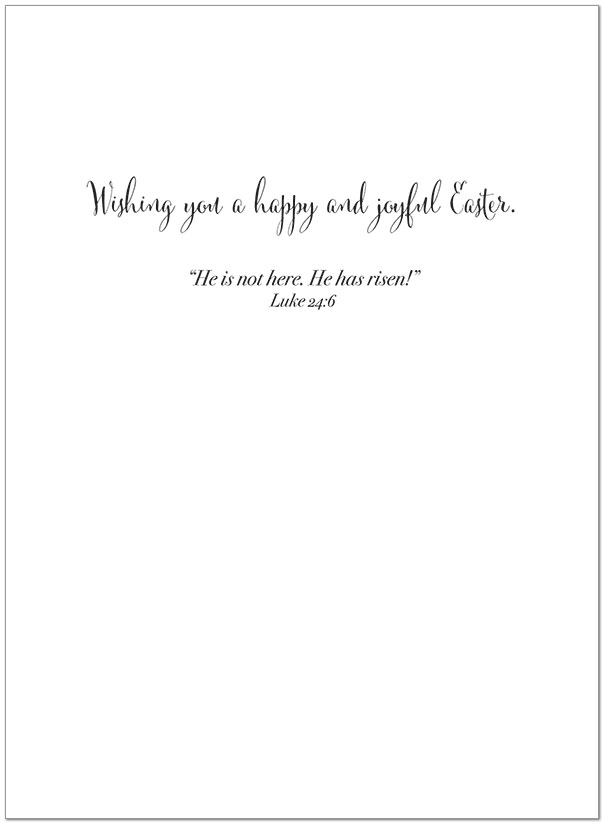 Interior Text: Wishing you a happy and joyful Easter. "He is not here. He has risen!" Luke 24:6
