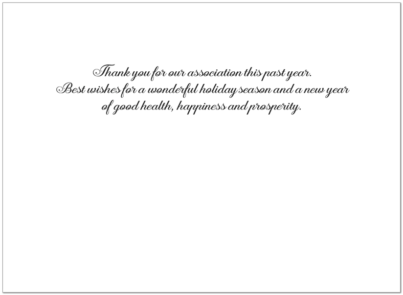 Interior Text: Thank you for our association this past year. Best wishes for a wonderful holiday season and a new year of good health, happiness and prosperity.