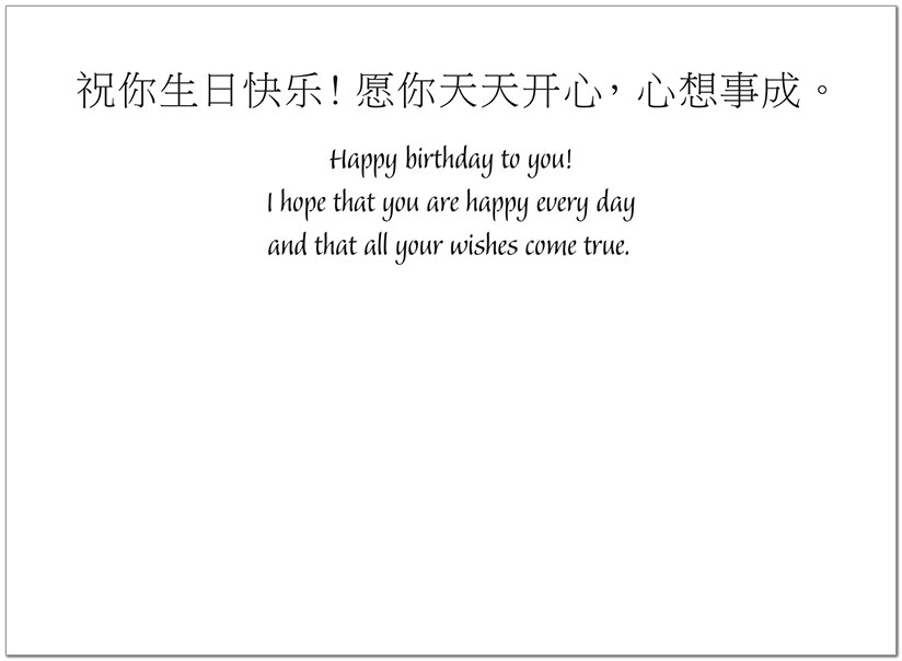 Interior Text: Happy birthday to you! I hope that you are happy every day and that all your wishes come true.