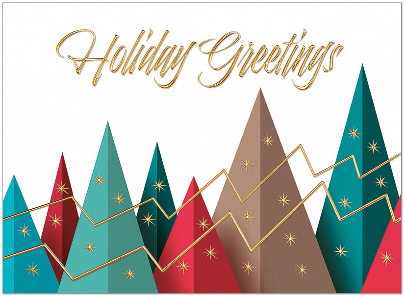 This elegant holiday tree graph design features gold foil embossing. Printed on matte FSC® paper.