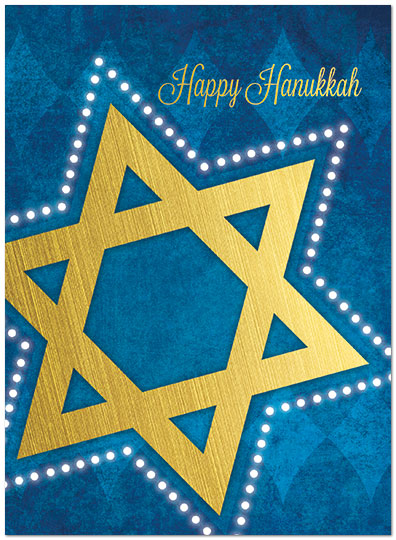 A contemporary Hanukkah card with a gold Star of David, printed on satin FSC® paper.