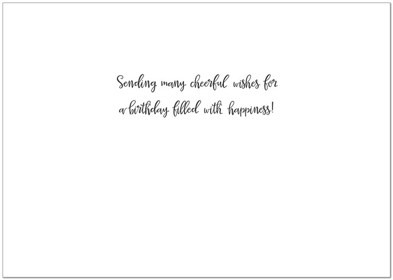 Interior Text: Sending many cheerful wishes for a birthday filled with happiness.