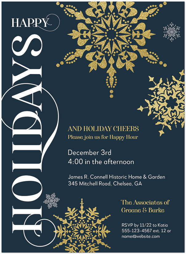 An elegant navy and gold snowflake design printed on satin FSC® paper.