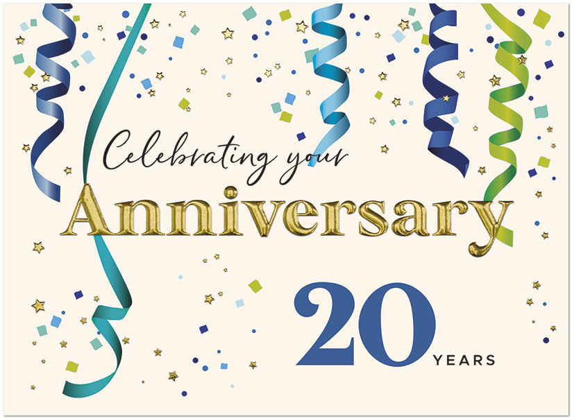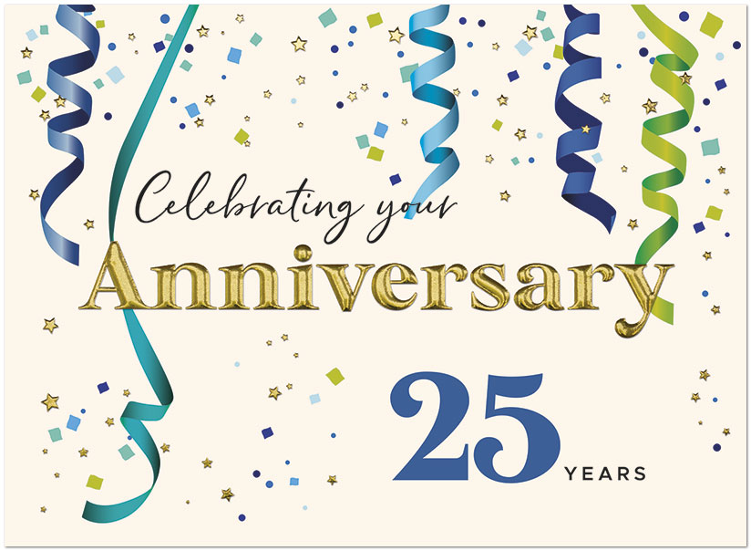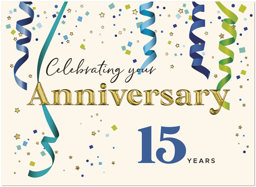 This anniversary card can be customized to celebrate employee milestone anniversaries. The elegant confetti design features gold foil embossing on vanilla FSC® paper. Choose from 1,5,15,20,or 25 years.