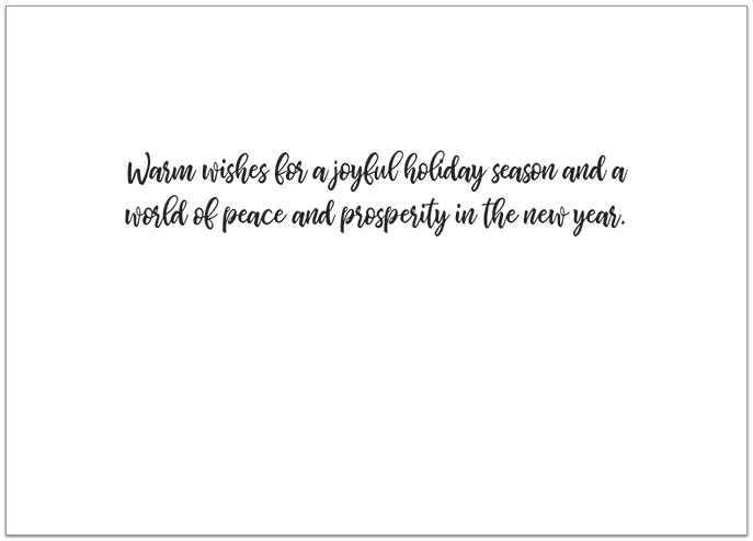 Interior Text: Warm wishes for a joyful holiday season and a world of peace and prosperity in the new year.