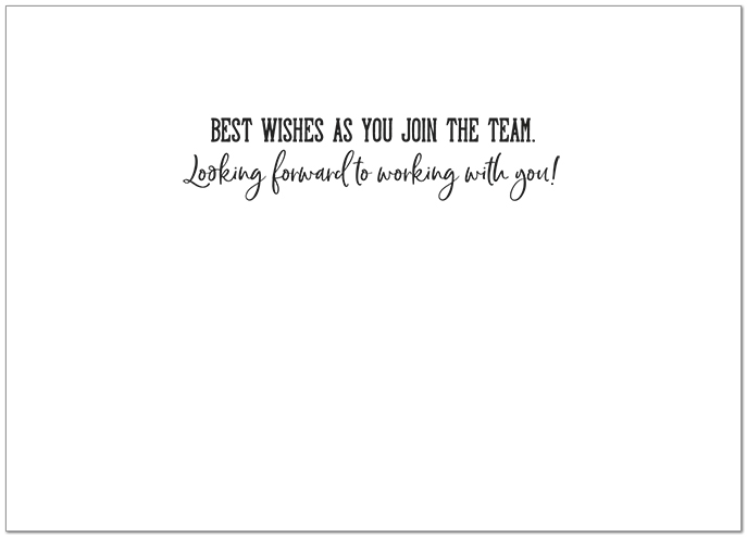 Interior Text: Best wishes as you join the team. Looking forward to working with you!