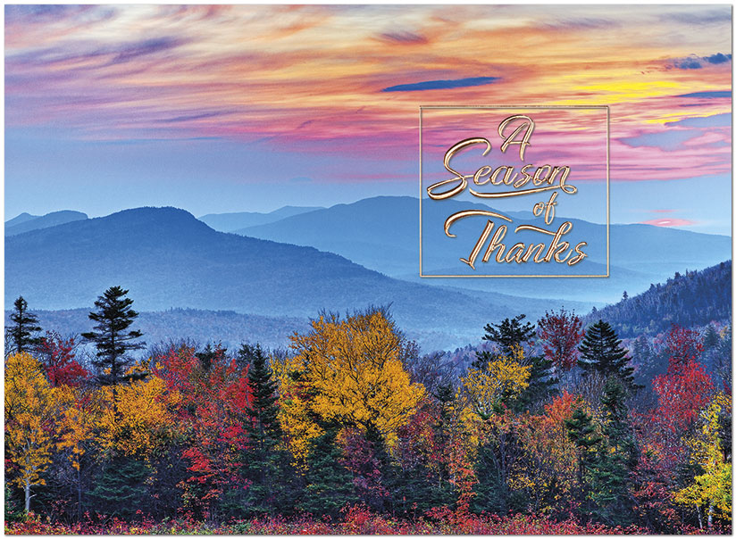 A stunning fall sunset featuring copper foil embossing. Printed on matte FSC® paper.