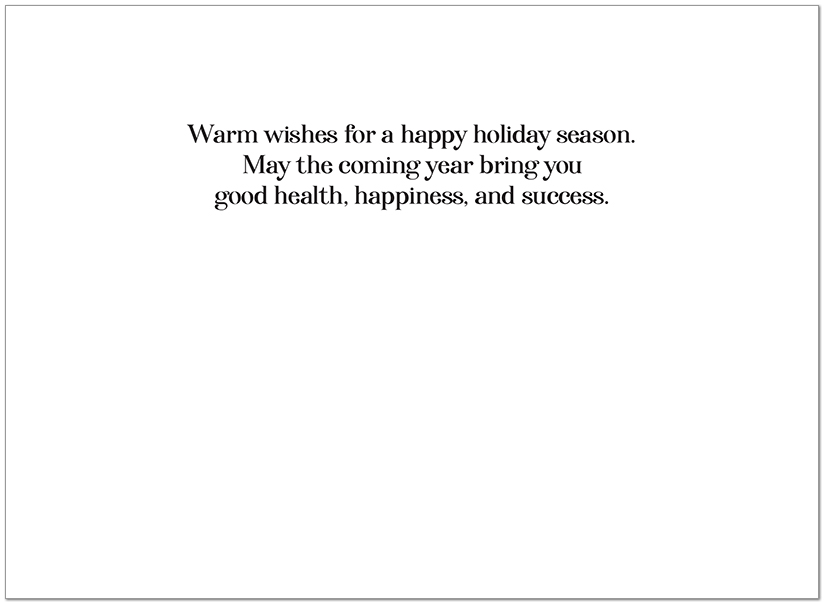 Interior Text: Warm wishes for a happy holiday season. May the coming year bring you good health, happiness, and success.