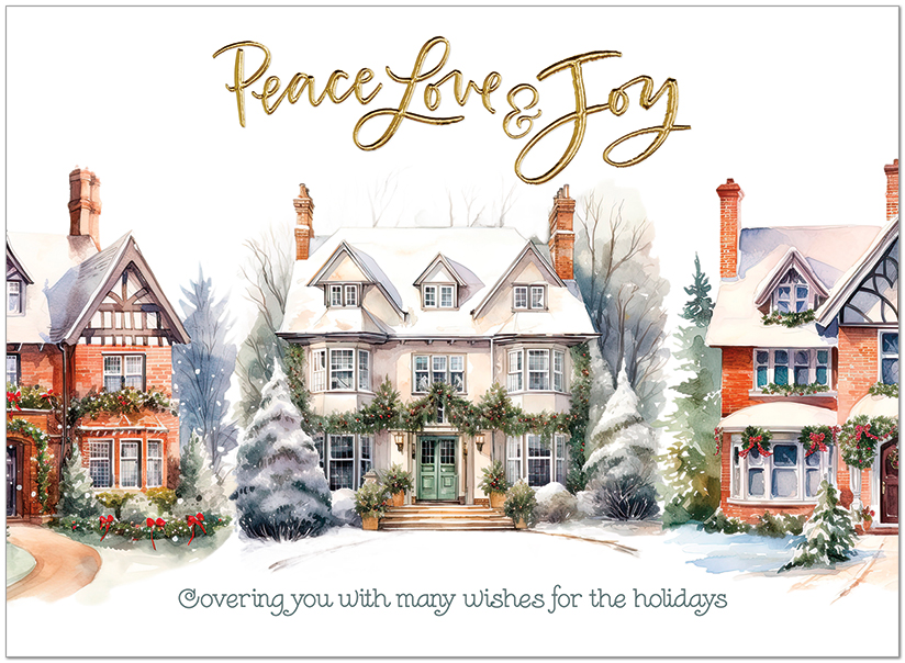 Celebrate the season with this holiday homes design featuring gold foil embossing. Printed on matte FSC® paper.