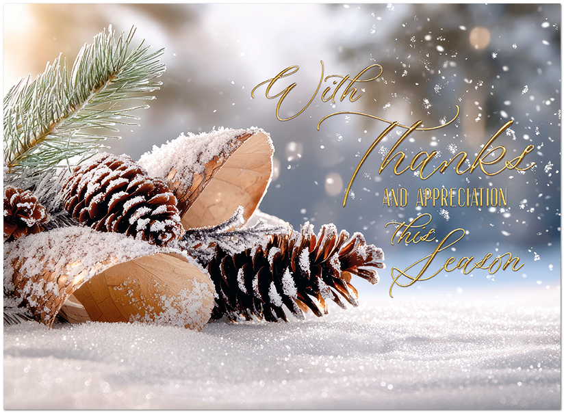 This festive card shows your appreciative and thankful sentiments. It features gold foil embossing on matte FSC® paper.