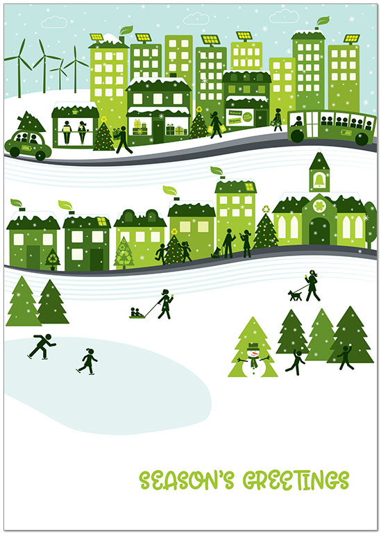 This sustainable city is gearing up for the holiday season! Show your concern for the environment with this unique card printed on 100% recycled, matte FSC® paper.