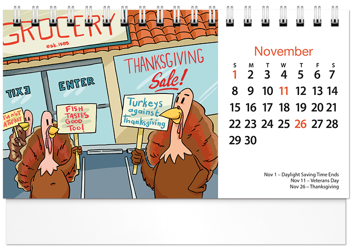 Each month features a seasonally appropriate, humor cartoon and monthly planners on the back of each page to allow room for notes.