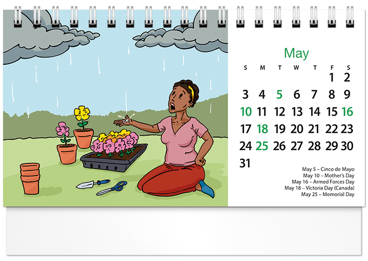 Desk calendar orders will ship in 5 to 7 business days starting May 1.