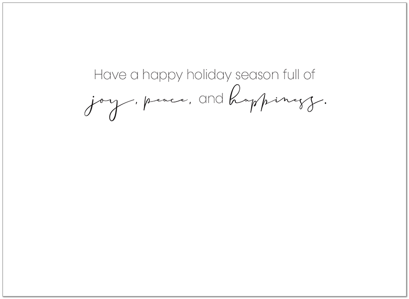 Interior Text: Have a happy holiday season full of joy, peace, and happiness.